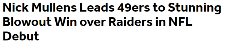 Nick Mullens Leads 49ers to Blowout Win Over Raiders