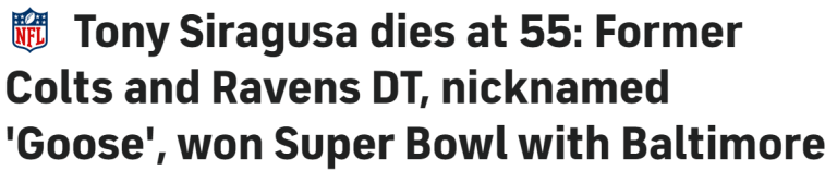 Super Bowl Champion Tony Siragusa Dies @ 55