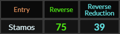 Stamos sums to 75 and 39 in Reverse.