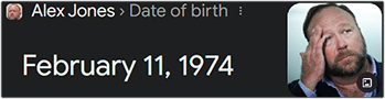 February 11th, 1974 is also the date famous conspiracy theorist Alex Jones was born: