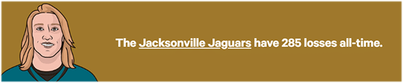 The Jaguars’ coach, Liam Coen, just started his 2085th week since birth. The loss to L.A. handed the Jaguars their 285th loss in franchise history: