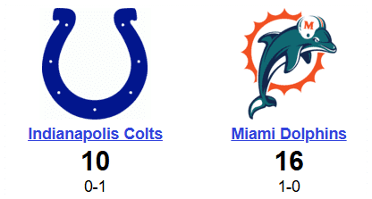 That Colts-Dolphins game with Trumpy and Jones on the microphone ended with a score of 10-16, which is like an upside-down 911: