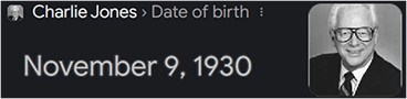 The announcer Charlie Jones was born on November ninth, or 11/09:
