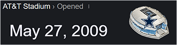 The Dallas Cowboys play their home games at AT&T Stadium, which first opened on 5/27 of 2009 – a possible tribute to the Skull & Bones society at Yale University: