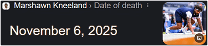 When I saw the name Kneeland in the news, I instantly knew it would be numerically-sychronized with the NFL’s Kneeling theme that began playing out in 2016, when former 49ers quarterback Colin Kaepernick refused to stand for The Star-Spangled Banner, instead choosing to Kneel throughout it. This sparked what turned into a global movement for racial justice, with players in various sports still kneeling before games to this very day, almost a full decade later.