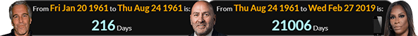 Epstein died a span of 2044 days before the Pi Day Eclipse, or 216 days before its date: