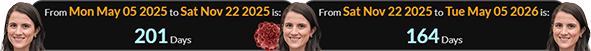 Saturday’s revelation was made 201 days after Tatiana’s birthday and 164 days before her next: