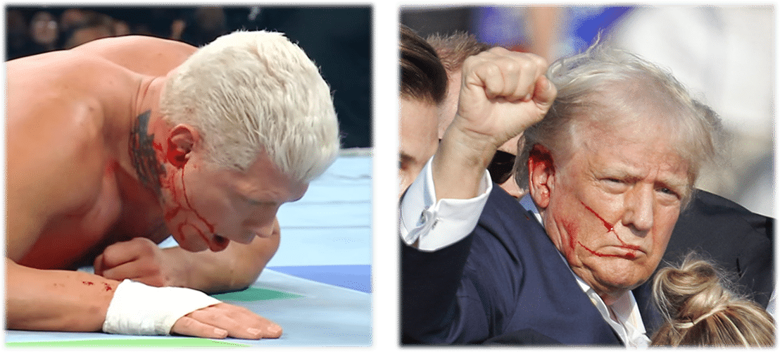 Providence is in Rhode Island. During the first match of Cena’s last show, Cody Rhodes suffered a bloody ear, almost identical to what we saw on Trump after being shot in the ear: