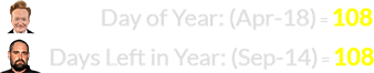 Conan O’Brien’s birthday is the 108th day of the year, while Nick’s is the date leaving 108 days in the year: