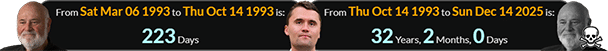 Charlie Kirk, who was born a span of 223 days after Rob Reiner’s birthday, would have turned 32 years, 2 months old on the date of the double murder: