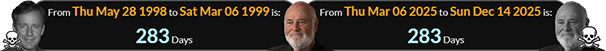 Phil Hartman died a span of 283 days before Reiner’s birthday, while Rob died 283 days after it: