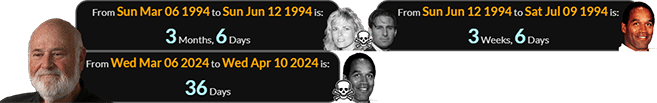 He was 3 months, 6 days after his birthday for the Brown-Goldman murders, which were 3 weeks, 6 days before the birthday of O.J. Simpson, who died 36 days after Reiner’s birthday: