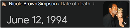 1994 is the year that Orenthal James Simpson was accused of killing Nicole Brown Simpson and Ronald Goldman: