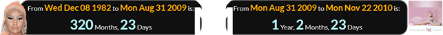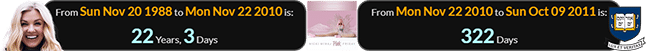 She put ink to paper at 320 months, 23 days of age, and released her first album on the label a span of 1 year, 2 months, 23 days later: