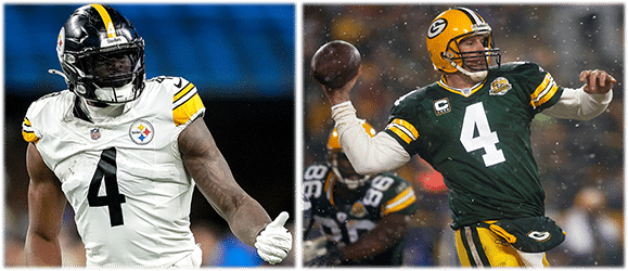 Brett Favre seems worth mentioning because just like DK Metcalf, he wore #4. The man who replaced Favre in Green Bay, Aaron Rodgers, is Metcalf’s quarterback in Pittsburgh: