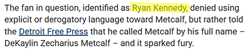 In fact, according to the fan, the entire reason Metcalf went after him was because he called him by his full name: