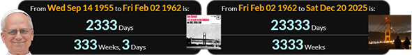 Leo XIV was 2,333days (or a span of 333 weeks, 3 days) old on that date, and the San Francisco blackout was 23,333days (or 3333 weeks) later: