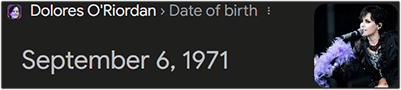 Dolores O’Riordan was born on the 6th of September, or 6/9: