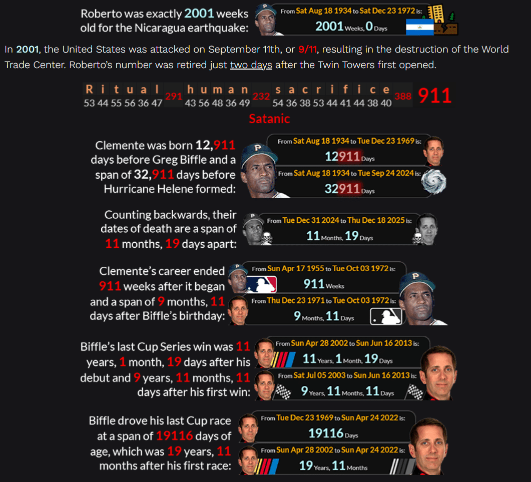 Recall how Greg Biffle was born exactly 88 months before John Cena and 8 years, 8 months before Kobe Bryant. He then died 88 weeks after O.J. Simpson passed away on John Madden’s 88th birthday, 88 days before Pope Francis’s 88th birthday.