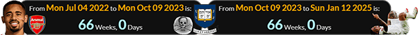 Yale’s ‘Skull & Bones’ anniversary was exactly 66 weeks after Jesus signed with Arsenal, and he tore his ACL a span of exactly 66 weeks later: