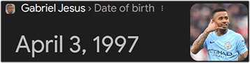 Gabriel Jesus was born on a date with Primary numerology of 123:![]()