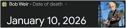Weir’s death was 20,234 days after “Ripple” was first played and 2 months, 3 weeks, 4 days after his birthday: