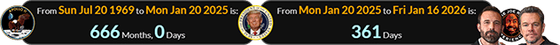 This JRE episode aired 361 days into Trump’s presidency, which began exactly 666 months after the Moon landing: