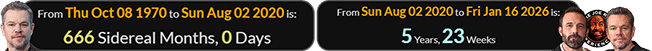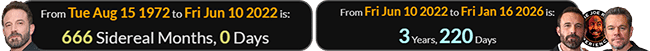 …and 3 years, 220 days after Ben Affleck turned 666 Sidereal months old: