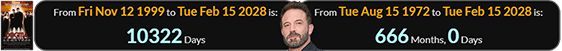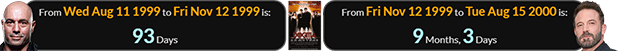 Dogma hit theaters 10322 days before Affleck’s 666th mensiversary: