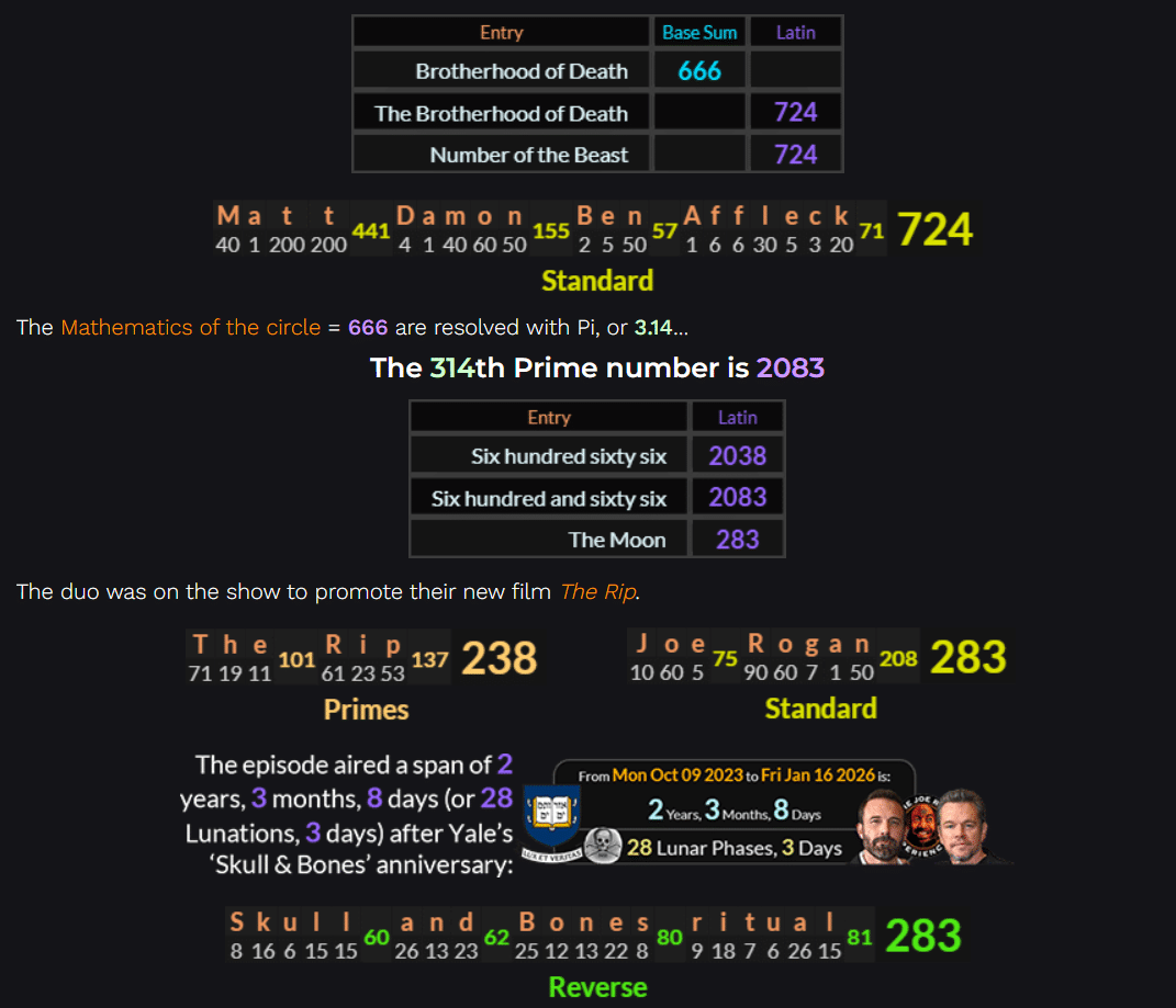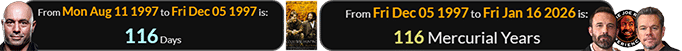JRE # 2440 aired 116 Mercurial years after the release of Good Will Hunting, which came out 116 days after Joe Rogan’s birthday:
