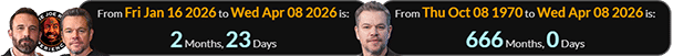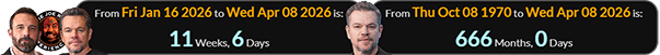 It was also 11 weeks, 6 days before Matt Damon turns 666 months old: