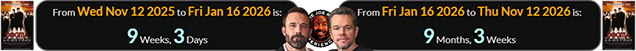 November 12th is 93 days after Joe Rogan’s birthday and a span of 9 months, 3 days before Affleck’s: