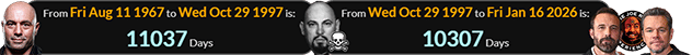 The episode also went up a span of 10307 days after the death the Church of Satan founder, which was 11037 days after the birth of Joe Rogan: