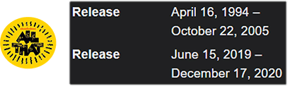 The original run for the Nickelodeon TV series All That began and ended on a Saturday. In 2019, Nickelodeon brought the show back for one more season, beginning on another Saturday: