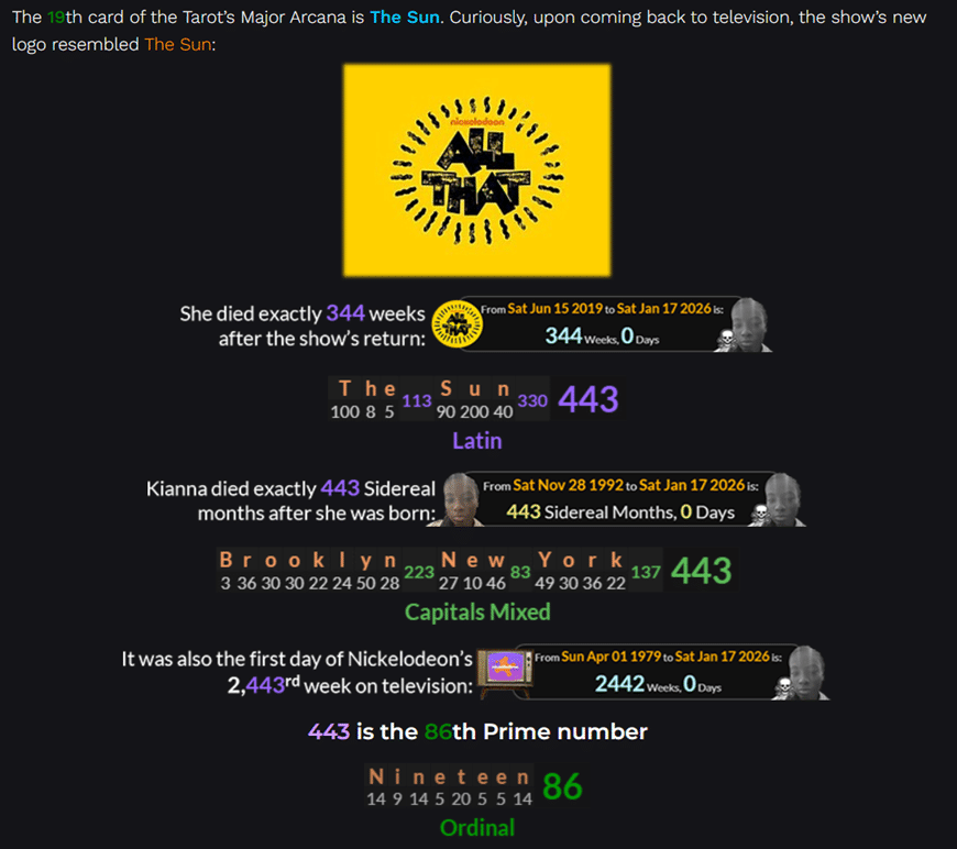 Important: This post states Kianna’s date of death was Jan. 17th, but it was actually Jan. 16th, with the news making headlines on the 17th. The 17th is just as important, because that’s when the Broncos defeated the Bills with 33 points.