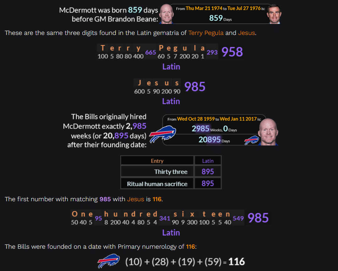 These are the same three digits found in the Latin gematria of Terry Pegula and Jesus.