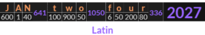 That license plate I saw in 2014 of JAN 24 yields a gematria that has the likeness of a year as well, in the same Latin cipher too.