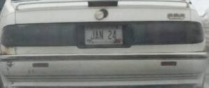 I noticed that the car driving in front of me had the custom license plate of JAN 24.