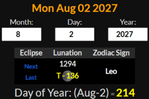 An eclipse over Egypt will occur on August 2nd, 2027, which happens to be the 214th day of the year. ๐