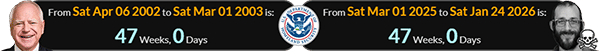 Immigrations and Customs Enforcement was founded by DHS exactly 47 weeks after Tim Walz’s birthday, and exactly 47 weeks before the date of Saturday’s shooting: