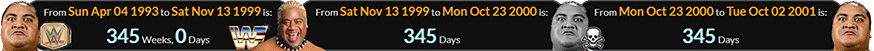 Solofa Fatu first appeared as Rikishi a span of exactly 345 weeks after Yokozuna’s first World Championship, and 345 days before his death, which was a span of 345 days before his own birthday: