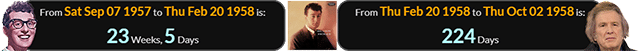 It was also 224 days before days before Don McLean’s birthday, and 23 weeks, 5 days after Buddy’s: