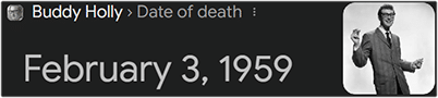 Buddy Holly died on February 3rd, or 2/03: