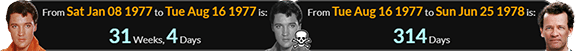 Elvis “left the building” a span of 31 weeks, 4 days after his birthday and 314 days before Yann Martel’s:
