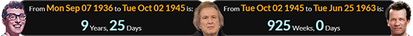 Don McLean was born 9 years, 25 days after Buddy Holly and exactly 925 weeks before Yann Martel: