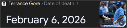 Pinch runner Terrance Gore was born on June 8th, or 6/8, the 159th day of the year:![]()