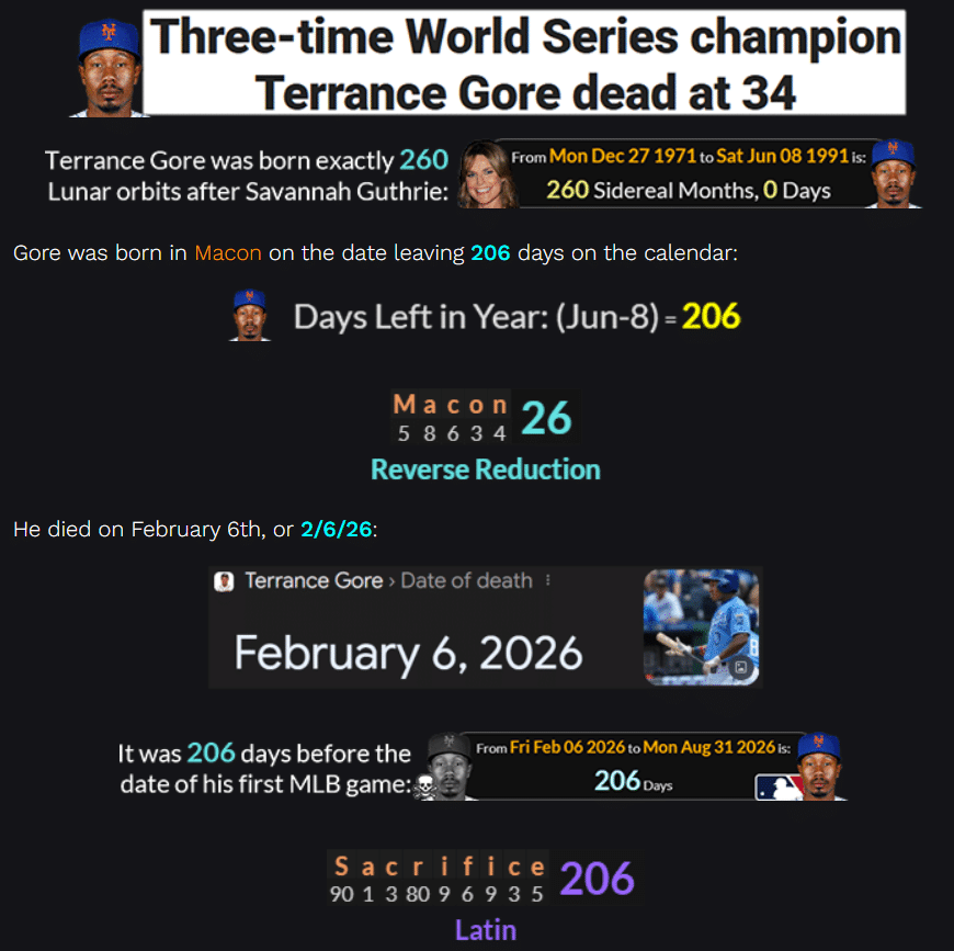 Terrance Gore was born 233 months after Savannah Guthrie and 233 days before Nancy’s birthday: