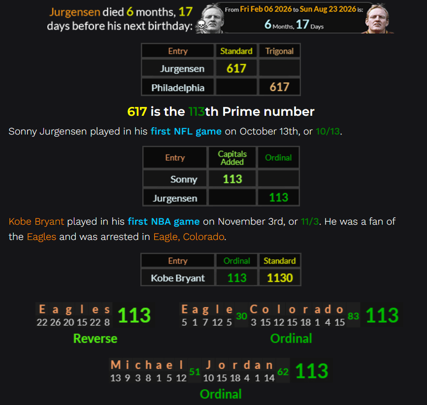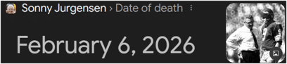Jurgensen died on February 6th, or 2/06 of ’26: