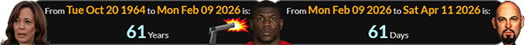 Kamala Harris is 61 years old, and the shooting was 61 days before Anton LaVey’s birthday: