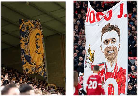 Diogo wore #18 for Wolves and #20 for Liverpool. As the game clock approached 18:20, fans in the stadium paid tribute to Diogo with various displays and a respectful round of applause.